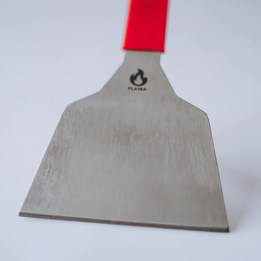 El borde de ataque está super afilado, te permite despegar la carne de la plancha sin perder nada de la costra producto del Smasheado.